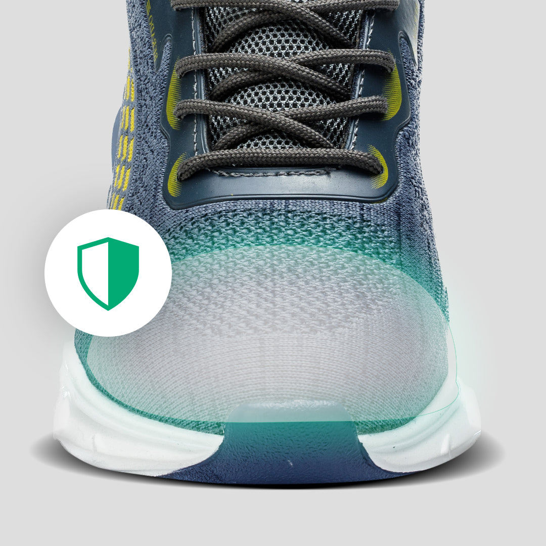 Geavanceerde glasvezel bescherming die 40% lichter is dan traditioneel staal. Brede teenruimte voor natuurlijke beweging