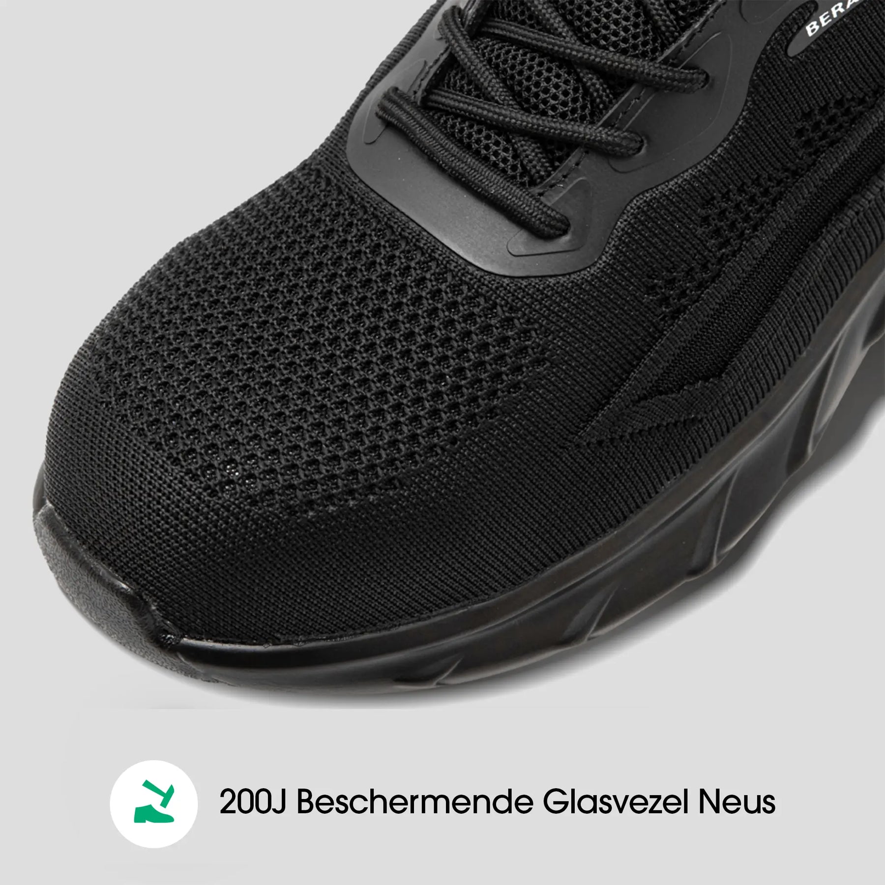 Geavanceerde glasvezel bescherming die 40% lichter is dan traditioneel staal. Brede teenruimte voor natuurlijke beweging.